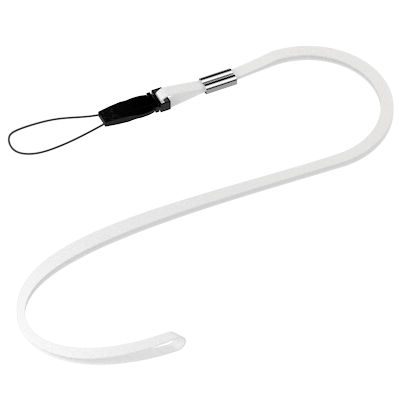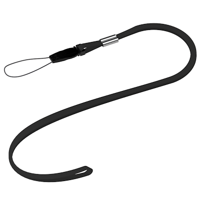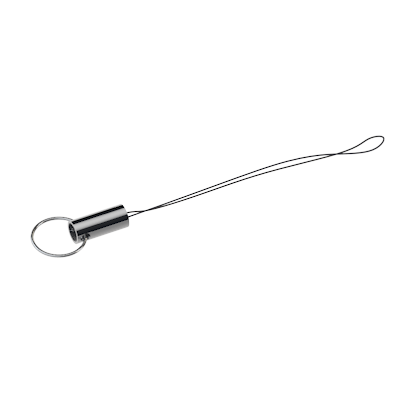 Short, black polyester strap with a metal end, suitable for most flash drive models on the catalogue. It can be used as a keychain or telephone charm.