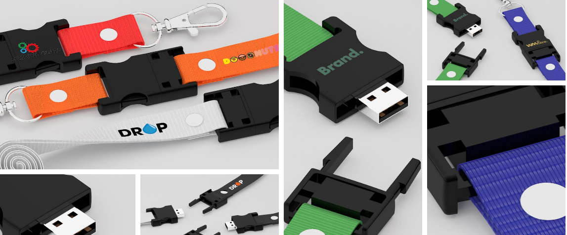 Dual function USB flash drive: neck strap and USB memory. The connector is concealed in the plastic snap link. Since Lock-small is equipped with a badge hook, it is an ideal gadget for events and fairs. It can be customised on both sides of the snap link with silk-screen or CMYK printing, and silk-screen printing on the strap.
