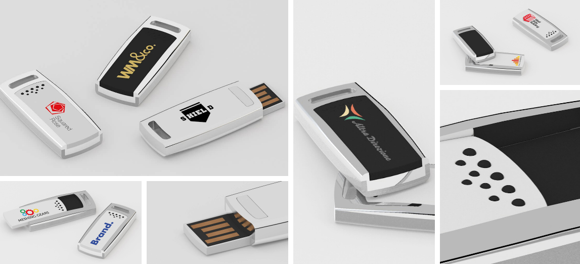 Plastic and metal USB flash drive that is ultra compact as a result of the latest generation COB chip. This model is much more manageable as a result of the dotted surface, which makes it easier to slide it open. It also has a functional slot at the end to apply accessories. Z-Drive is a model exclusively manufactured by Maikii. In 2009, its design won the IF Design Award. It can be customised on both sides with silk-screen printing and laser engraving.